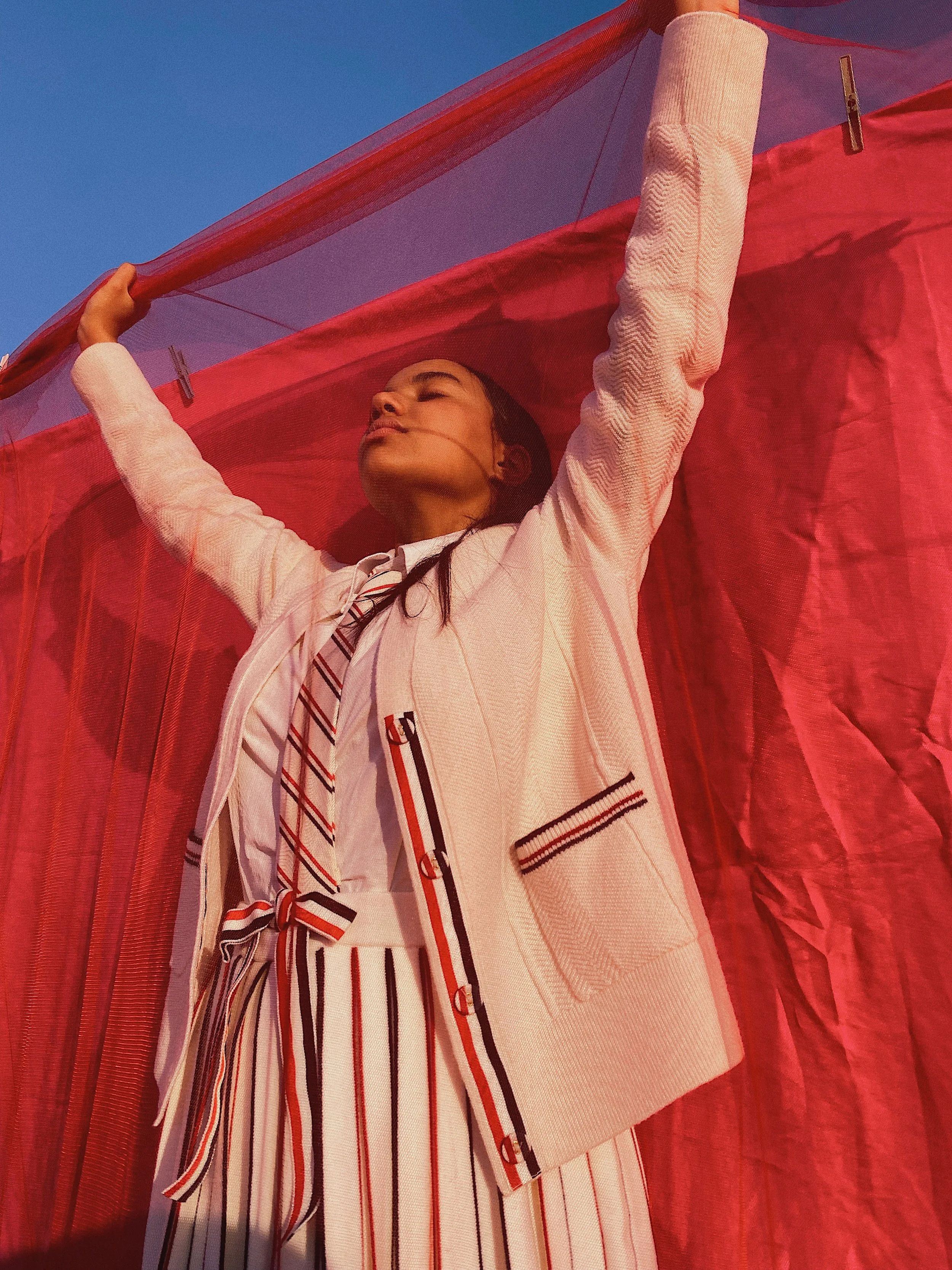 For Thom Browne and Nataal, the 24-year-old travelled into the Atlas Mountains at sunset with his frequent collaborators, younger brother Othmane and sister Fatima Zahra, to create a celestial sequence that’s alive with gentle movement. “For me, photography has always been a family affair, which is how I started my ongoing body of work 3aila (‘family’ in English) with my siblings,” he says. “They both play a huge part in developing the ideas behind the pictures and we also support each other in conceptualising new stories.”