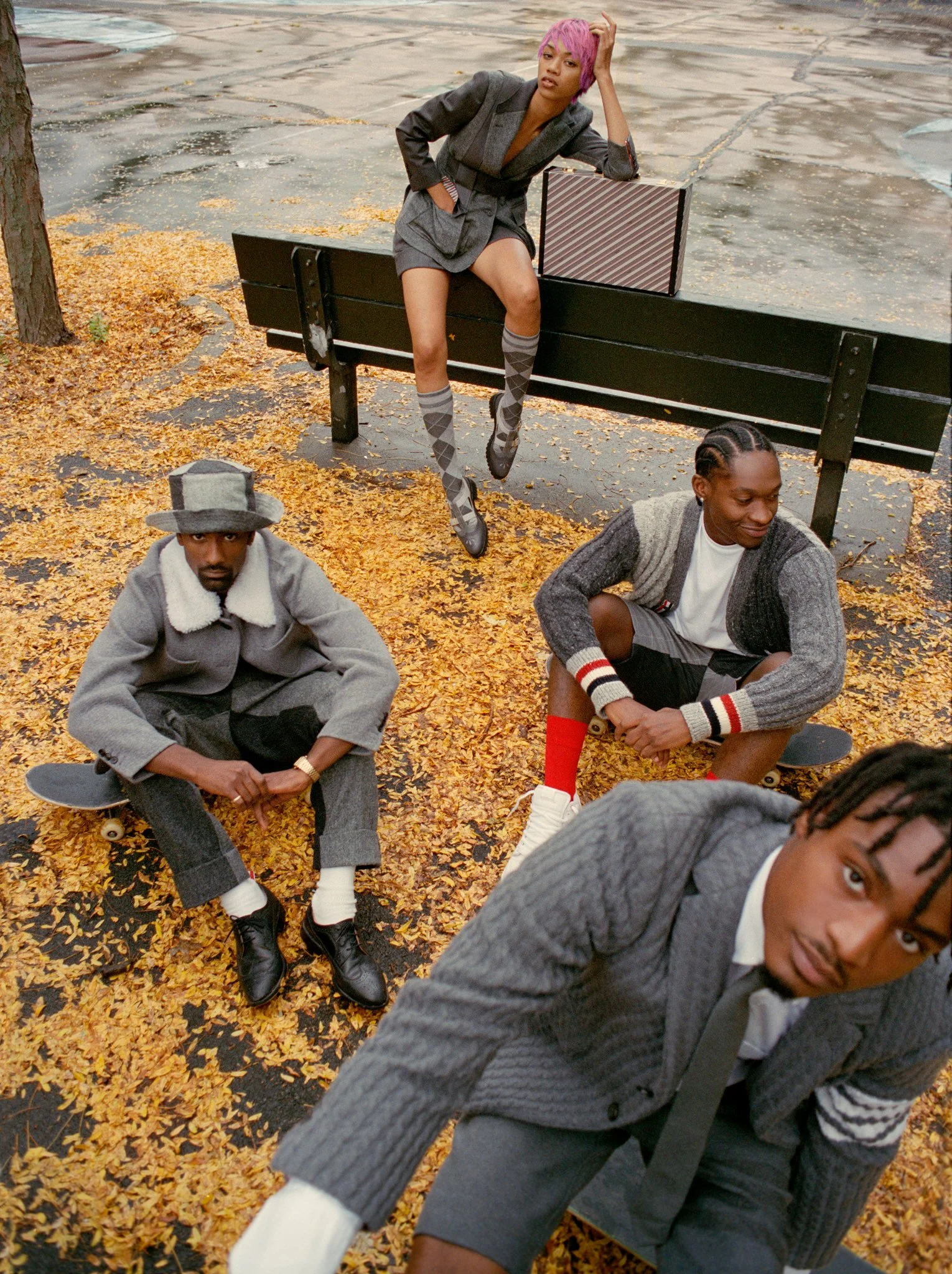 Created in collaboration with Thom Browne. All clothing and available from FARFETCH.